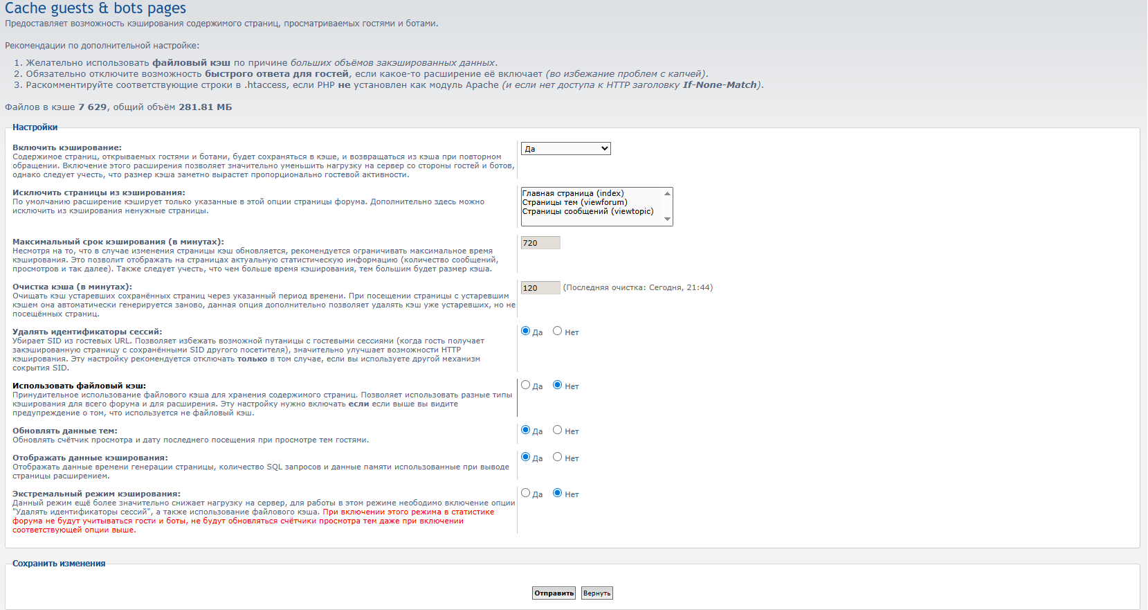 Тоже ничего не меняется. "<!-- CGBP DEBUG OUTPUT -->" в коде страниц не заменяется на информацию о кешировании. Поэтому не понятно, какая страницв грузится. Отключал-выключал опцию вывода информации - ноль изменений.