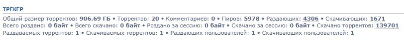 Судя по цифрам у вас либо включён мультитрекер или отключена обработка торрент файла. Чтоб был обмен, нужно чтоб раздающий и качающий проходили через анонс именно вашего трекера.t4p2 писал(а): 18 дек 2025, 16:25 а, и на трекере пишется вот так вот (есть раздающие, есть скачивающие, но обмена ноль...