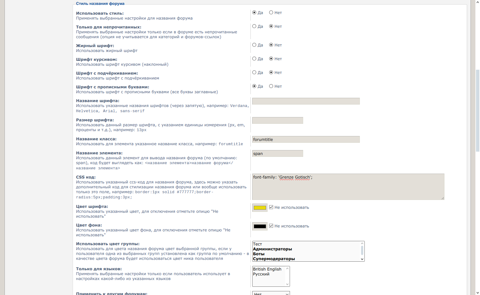 /ext/ppk/stylizedforumtitle/styles/prosilver/template/event/overall_header_head_append.html с кодом подключения), создать css класс, этот класс использовать в стиле форума или прямо указать css код, главное подключить шрифтPPK